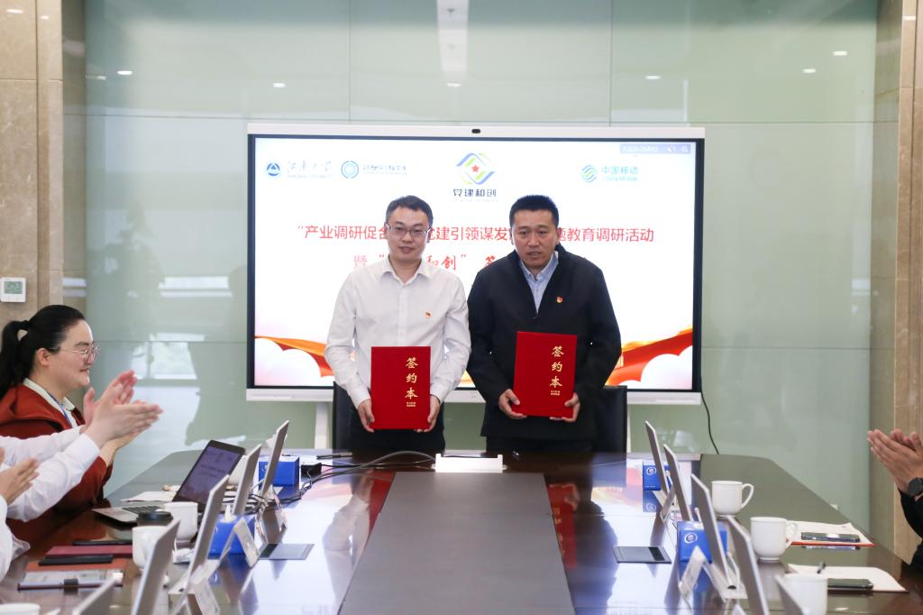 随后,黄漫 物联网工程学院办公室党支部书记安君、中国移动无锡公司滨湖营销中心党支部书记刘炜分别作为院企双方代表,在支部党员的见证下,签订“党建和创”主题实践共建协议。