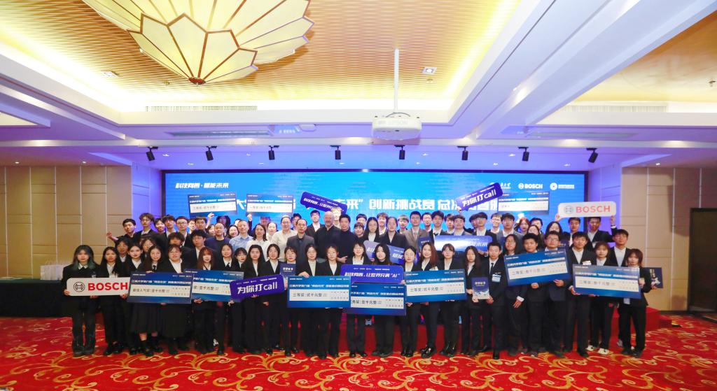 第六届“博动未来”创新挑战赛总决赛暨颁奖典礼在长广溪宾馆太湖厅圆满落幕。博世动力总成有限公司新业务发展部总监冯琦峰、创新平台经理金鑫、博世工业4.0高级经理崔清、博世工程体系专家HUG Juergen,黄漫
