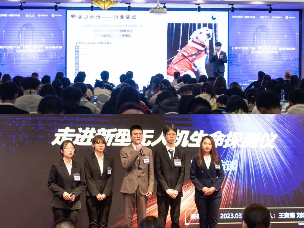 团委、国家大学科技园、物联网工程学院联合主办,博世动力总成有限公司全资赞助。大赛自2022年9月启动以来,共有来自物联网工程学院、食品学院、人工智能与计算机学院、机械工程学院、纺织科学与工程学院、设计学院、商学院、人文学院、理学院等80支参赛团队500余名学生参与,大赛组织方通过选题初筛、初赛、复活赛、决赛等环节确定最终获奖名单。整个赛程注重过程指导,先后举办竞赛发布会、创享论坛、创e加速营、寒假社会调研、导师面对面等,一系列的培训和指导为提升学生创新思维、完善项目方案提供了坚实保障。各项双创活动精彩纷呈、亮点频出、成果丰硕,营造了浓厚的热爱科学、鼓励创新、探索未知的创新创业氛围。