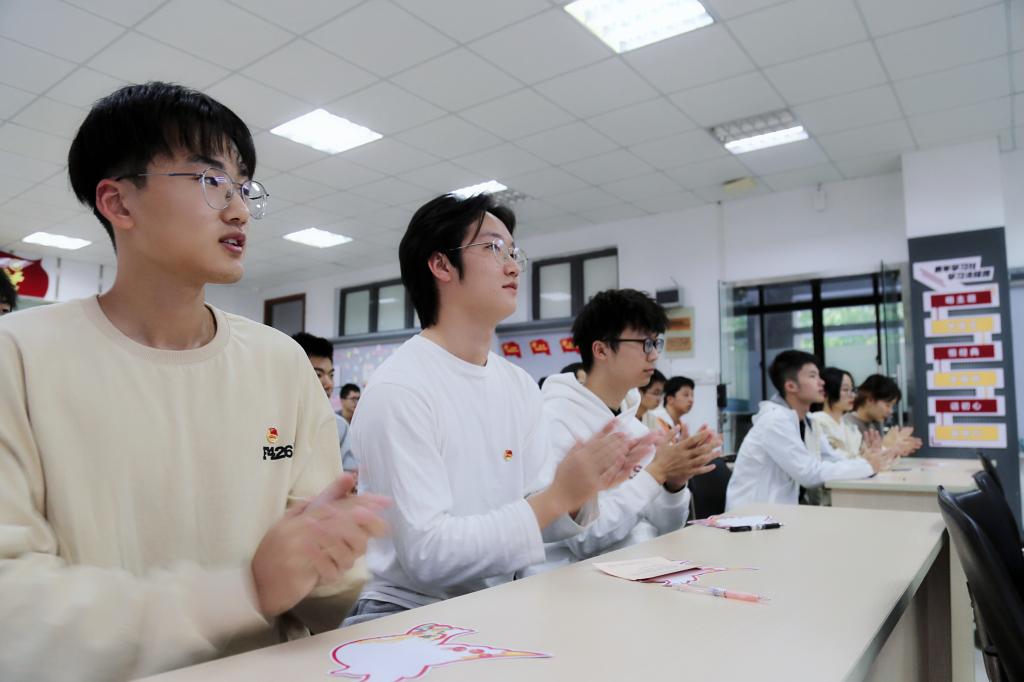 新思想引领新征程。孔丽丹领学《新时代的中国青年》白皮书,随着新时代中国青年一幅幅的主流群像、一组组的震撼数据从她口中报出,在座的团员青年不时发出惊叹声。“全校全年共执行保障型和发展型资助项目40余项,受益学生5万余人,资助总金额2.26亿元。”“控制科学与工程2022届博士毕业生万海英来自贵州一个大山深处的国家级贫困县,得益于国家政策扶持,小学、初中、高中就读免费学校,加之自己的勤奋,成为了当地第一个大学生、第一个博士生。”说到教育机会更加均等,孔丽丹用身边人、身边事作为教育素材,快速引起青年学生的共鸣,让他们切身感悟“国家好,青年才会好”的真谛。同时,她结合校园疫情防控、网络文明素养等贴近学生现实生活的话题,引导同学们以小见大、打开视野、树立格局、激励担当。