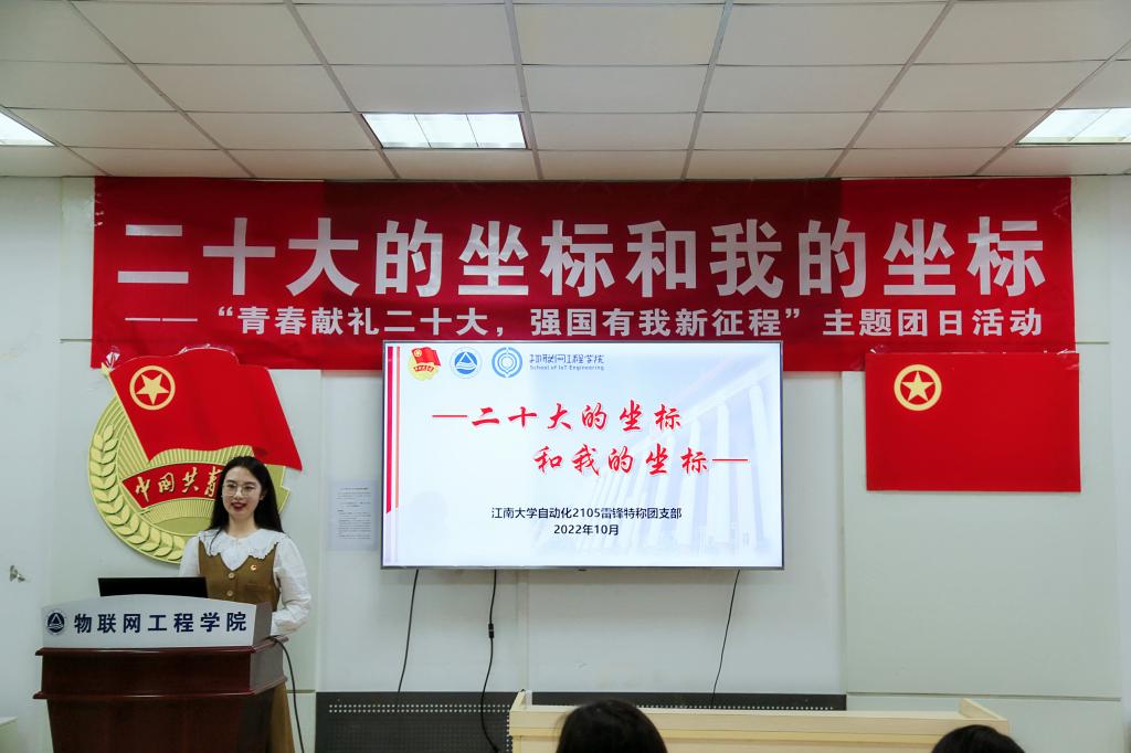 为迎接党的二十大胜利召开,进一步强化支部团员青年的爱国热情和使命担当,10月12日下午,自动化2105雷锋特称团支部在物联网工程学院C121开展了“二十大的坐标和我的坐标”主题团日活动。黄漫