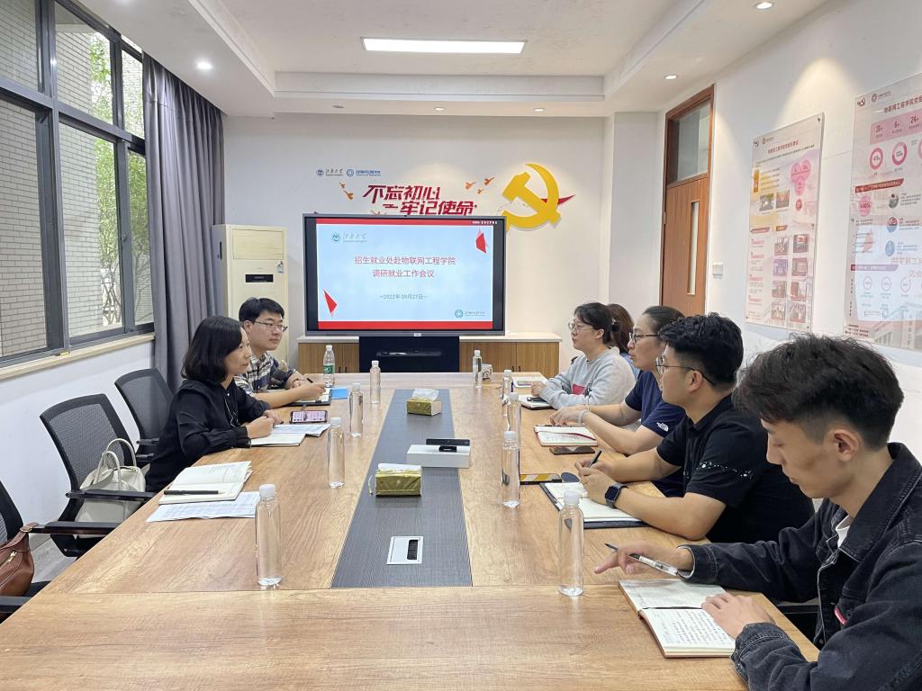为深入了解学院毕业生就业状况,进一步推进就业工作,近日,学校招生就业处副处长张婕英带领就业办薛羚伟和解宴宁赴物联网工程学院进行调研指导。学院党委副书记、副院长孔丽丹,2023届毕业生辅导员王志顺、陆奕君、谢幸福参加本次调研会。