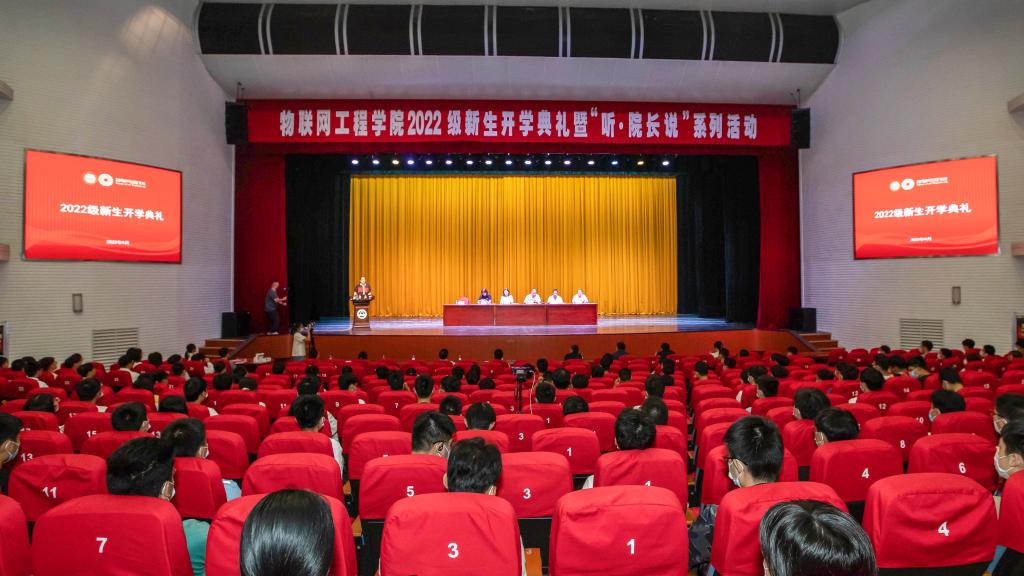 9月18日下午两点,物联网工程学院在文浩馆隆重举行2022级新生开学典礼暨“听·院长说”系列活动。学院党委书记程捷音,院长谢林柏,学院党委副书记兼副院长孔丽丹,副院长栾小丽、陶洪峰、樊启高以及2022级本科新生班主任代表、辅导员代表出席典礼,2022级全体研究生和本科新生参加活动。典礼由孔丽丹主持。