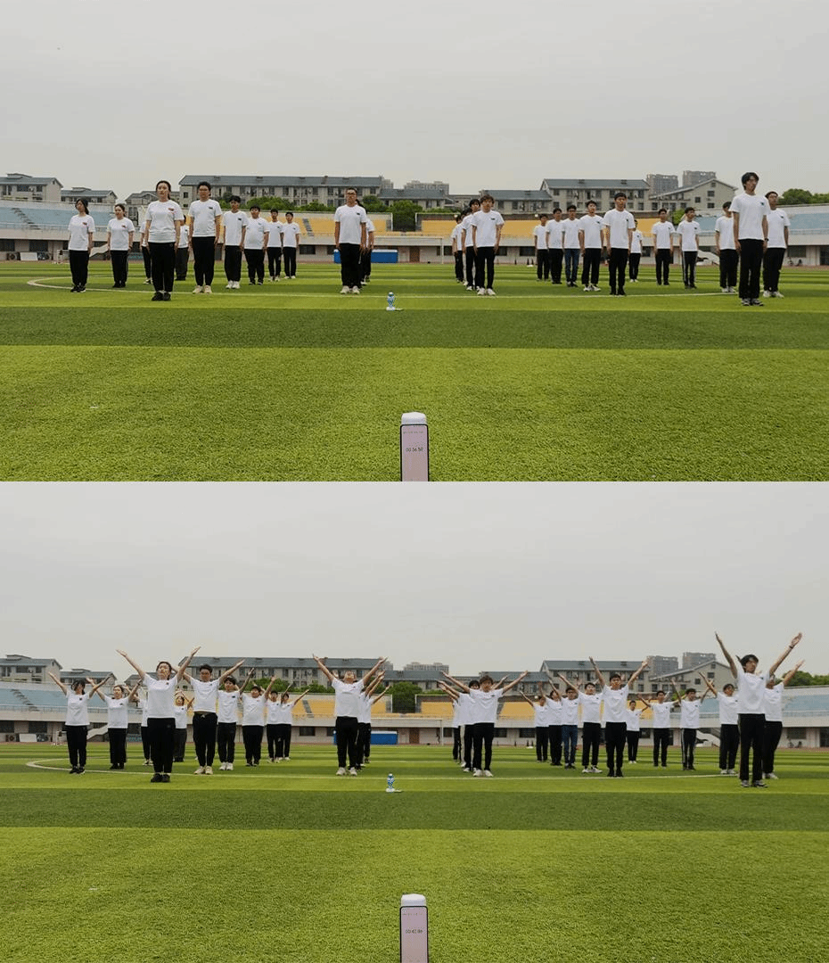 学院在3月组队报名确定后,广播操代表队便制定了详细的训练计划,选定队长,坚持平日里队员在宿舍内观看视频自行训练,每周末操场集中训练。参赛队员们全身心投入训练,每一次抬臂,每一个转身,甚至每一个细微的踮脚、拍手,都力求做到最好。因参赛人员较多,按照疫情防控要求,组织线下比赛难度较大,鉴于广播操项目的特殊性,最终比赛采用各学院独立线下录制,按照要求提交比赛视频的方式进行。