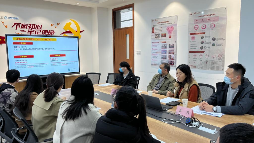 奋进计划(2021-2030)》。并结合自身的工作实际,与大家进行了深入交流。她讲到,奋进很重要的一点在于“进”,这个“进”可以理解为进取、精进,“进”对于我们每个人都有十分重要的意义。学校发布奋进计划,正是为了在当前这个跨越式发展阶段,进一步为大家树立目标,为大家振奋精神,带领大家以更加饱满的精神投身学校发展事业中去。党课最后,她以自己科研攻关的故事激励大家奋进在于勇于创新和实践,并以“苟日新、日日新、又日新”勉励大家,在工作和学习中要不断突破自我,以奋进精神融入奋进的物联、奋进的江南。