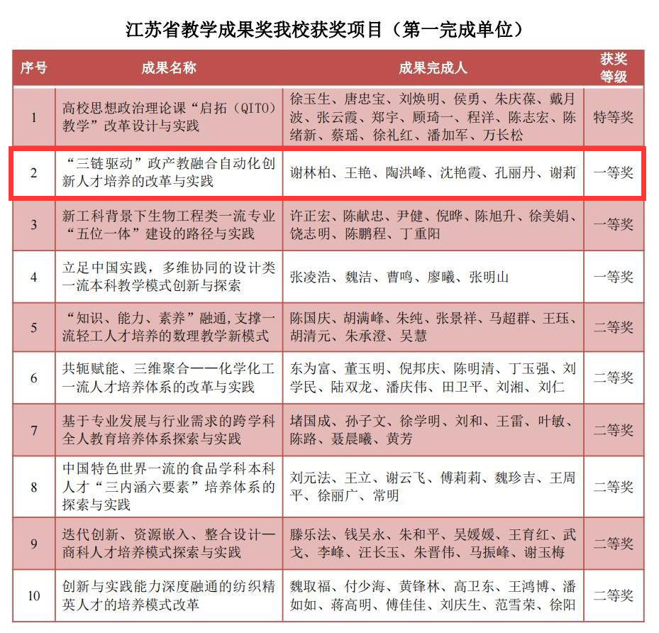 谢林柏教授主持完成的《“三链驱动”政产教融合自动化创新人才培养的改革与实践》荣获高等教育类一等奖。