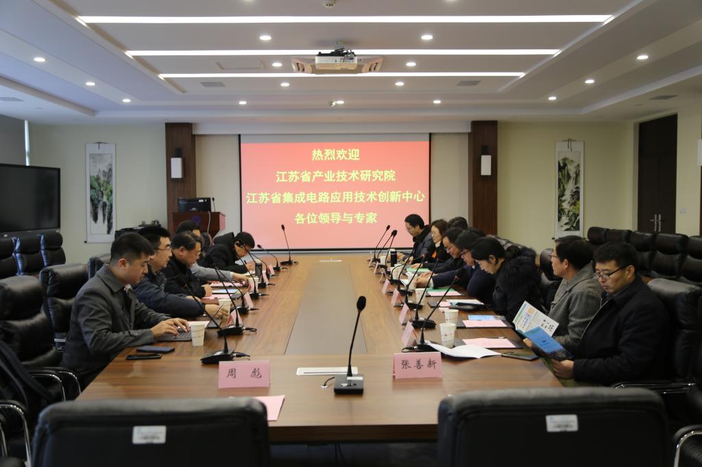 --江苏省集成电路应用技术创新中心合作对接会议在物联网工程学院召开。江苏省产业技术研究院国内合作部副主任庄韦、信息技术事业部副主任许盛、国内合作部业务经理王震、集成电路应用技术创新中心执行主任赵文虎、技术总监戚运东,黄漫