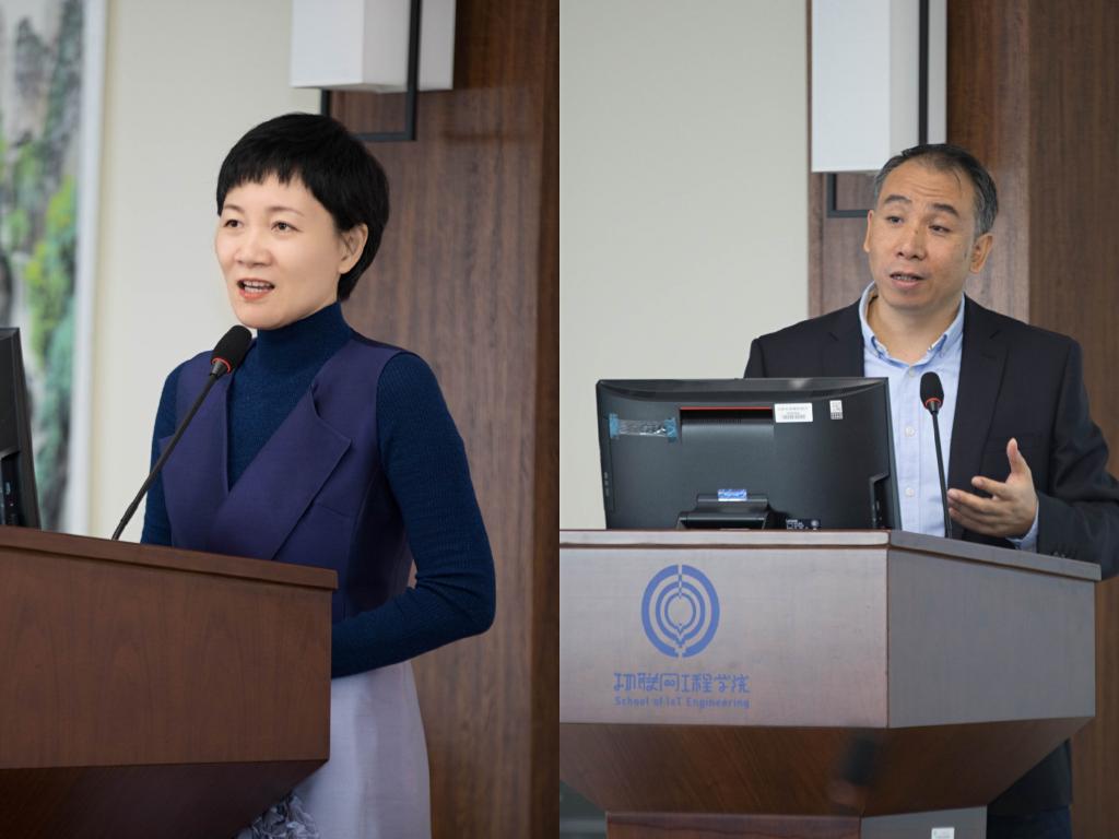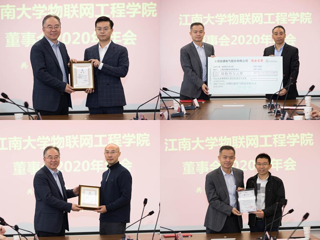 致辞。他介绍了学校和学院近年来的发展概况和取得的成绩,肯定了物联网工程学院在学校快速发展过程中做出的积极贡献,向长期以来关心支持学校学院发展的各企业单位表示衷心感谢,也向新加入的两家董事单位表示欢迎。他指出,今年是学校诸多事业发展承上启下的关键之年,“十三五”总结收官,“十四五”开篇规划。这既需要全体师生共同的努力,也要依靠各位企业家继续为学校以及学院的发展积极建言献策,希望在董事会成员的共同努力、同频共振下,携手共写校企合作新篇章。