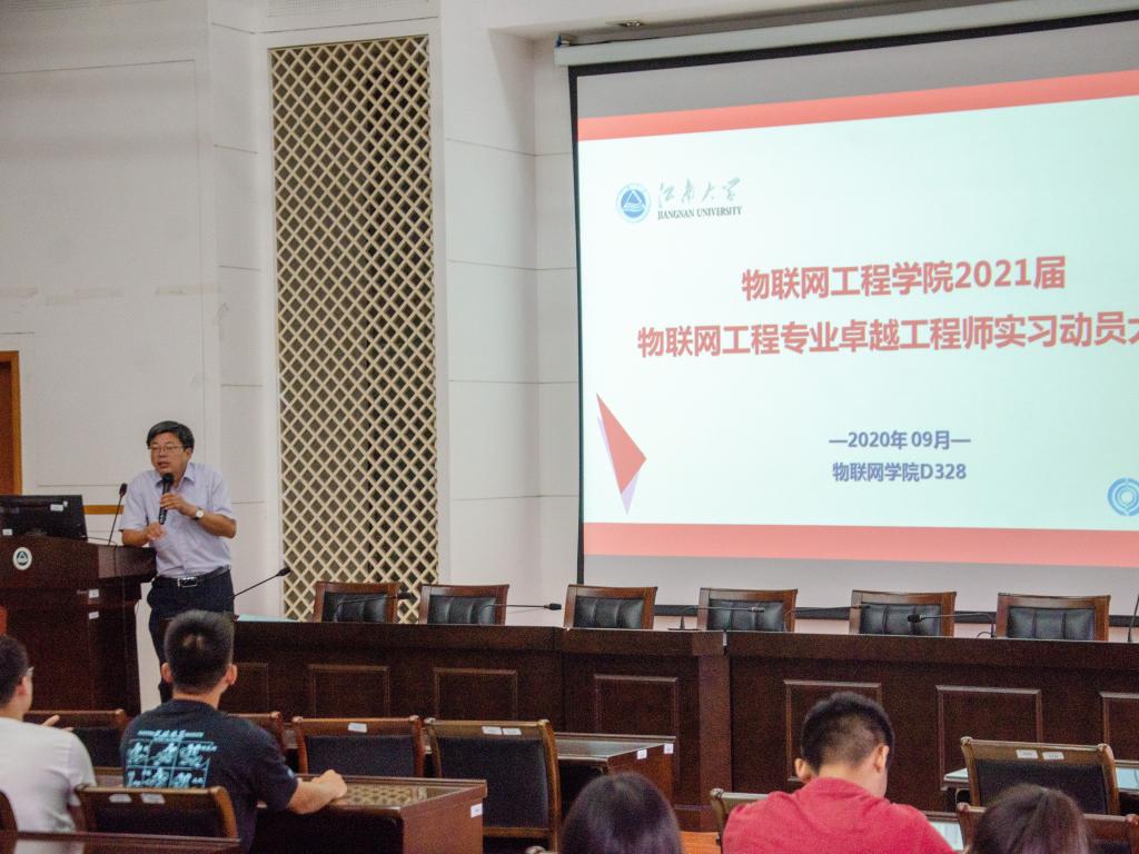 9月14日上午,物联网工程学院“卓越工程师教育培养计划”(以下简称“卓工计划”)实习动员大会在学院D328举行。信息技术系主任秦宁宁教授、专业责任教授朱启兵教授、吉训生教授及2017级物联网工程专业全体同学出席动员大会。会议由王志顺主持。