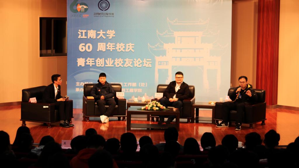 甲子峥嵘育桃李,江南筑梦庆芳华。在校庆60周年来临之际,物联网工程学院邀请优秀创业校友代表回校,与学院师生欢聚一堂,共话创业时代。本次论坛由学生工作部(处)和物联网工程学院联合主办,特邀智伴科技创始人、物联网工程学院2007届校友王不凡,极课大数据创始人、物联网工程学院2008届校友李可佳,生物易构创始人、物联网工程学院2014届校友魏佳星三位优秀创业校友出席。物联网工程学院党委书记程捷音,学生工作部(处)副部长陈琳,物联网工程学院党委副书记、副院长耿向阳,无锡市商务局外商投资企业服务中心主任徐迪等领导和嘉宾以及全校500余名学子参加了本次活动。论坛由物联网工程学院学生会副主席于子皓主持。