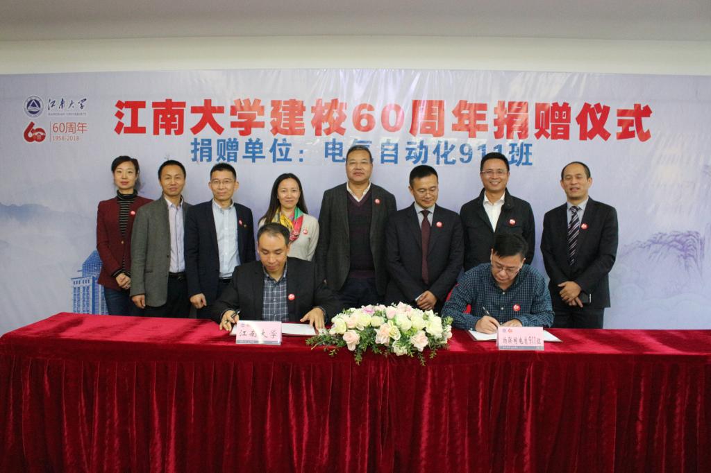 仪式上,物联网工程学院院长谢林柏与电气自动化911班代表郑成坚签订了捐赠协议。物联网工程学院党委书记程捷音接受捐赠,纪志成颁发捐赠证书。此次电气自动化911班向黄漫