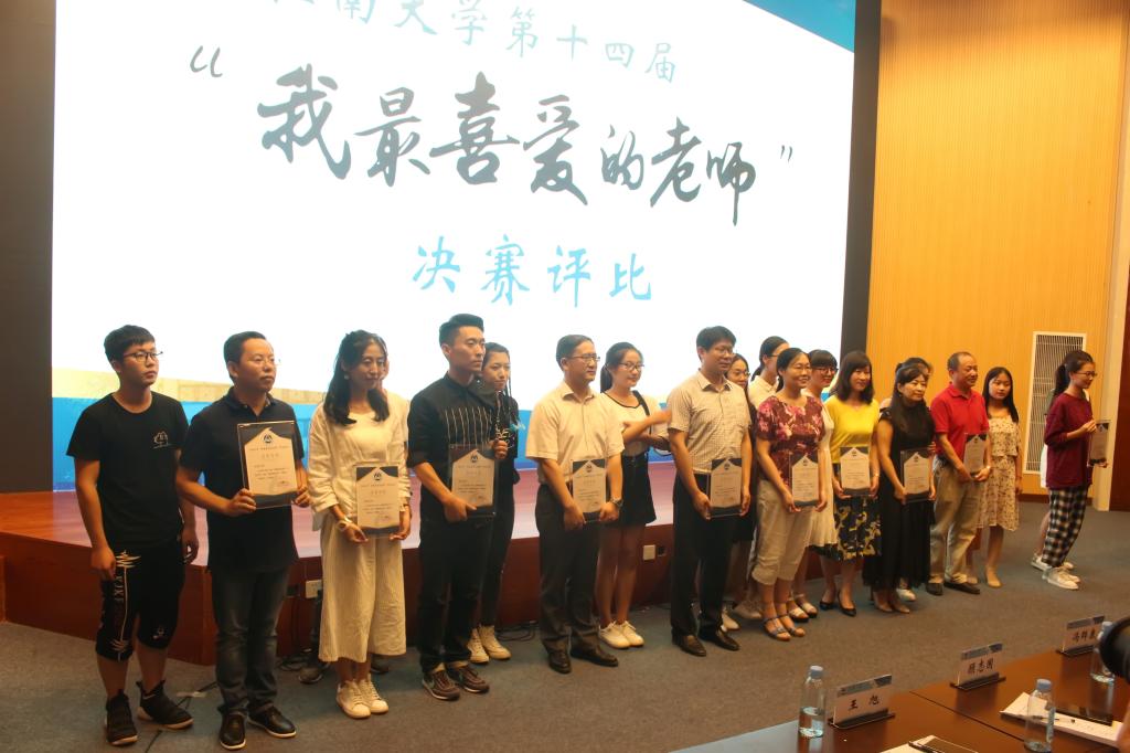 最后,经过评审打分,物联网工程学院钱瑛等十名老师荣获“我最喜爱的老师”称号。值得一提的是,获得荣誉称号的马克思主义学院王平一教授,今年是第一次入选,同时也是最后一次,明年他将离开热爱的教师岗位,光荣退休。