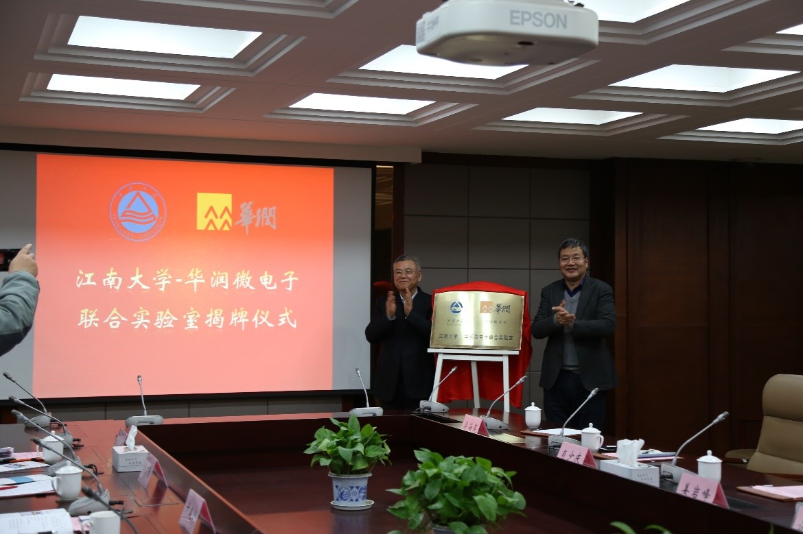 -华润微电子联合实验室”揭牌仪式在行政楼B305会议室举行。华润微电子专家委员会主任、华润微电子执委王国平,研发中心副总经理苏巍等华润微电子代表;以及黄漫