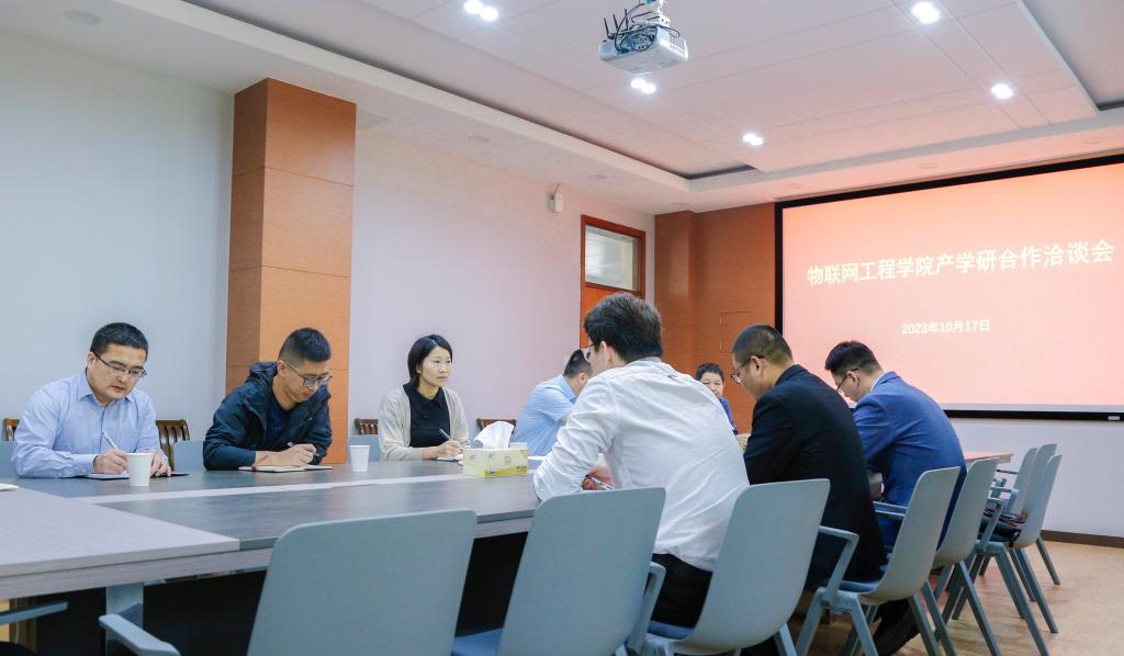 物联网工程学院与无锡市德宁节能科技有限公司产学研合作交流会在物联网工程学院D206会议室举行。无锡市德宁节能科技有限公司董事长唐逸、研发总监匡逸强、办公室主任钱俊,黄漫