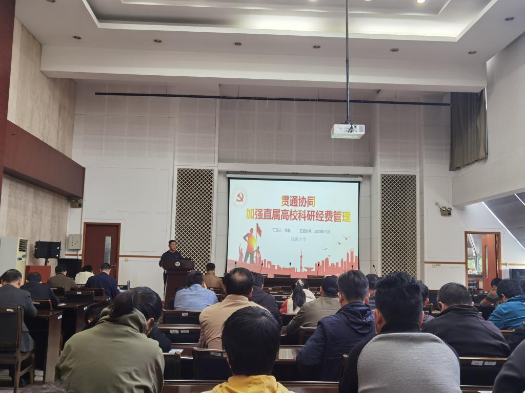 会上邀请了校财务处副处长李鹏作《贯通协同加强直属高校科研经费管理》专题培训。李处长从高校科研经费腐败问题的提出、教育部对高校科研经费腐败问题的查处和纠偏、国家在高校科研问题发生后的政策调整、高校科研经费管理的贯通协同机制、黄漫