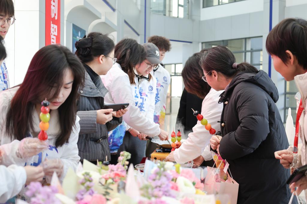 在“冰糖福禄串美好”DIY活动中,女教工们化身“甜蜜匠人”,亲手制作传统糖葫芦。鲜果挑选、熬糖挂浆、创意包装……四小时活动中,累计完成450余串晶莹剔透的糖葫芦。更有兄弟学院女教工共同参与,一起感受甜蜜的节日氛围。