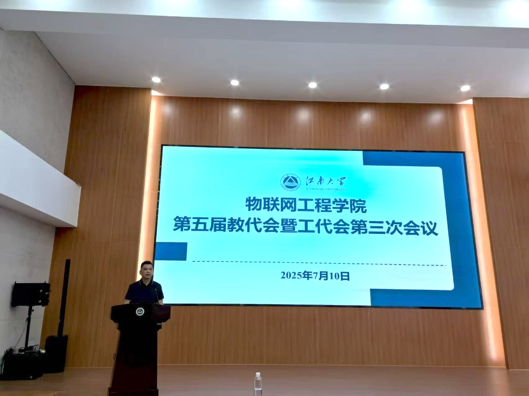 2025年7月10日下午,物联网工程学院第五届教职工代表大会暨工会会员代表大会第三次会议在学院D328报告厅隆重召开。本次会议是学院在推进高质量发展关键阶段召开的一次重要会议,旨在凝聚全体教职工智慧与力量,共商学院发展大计。会议由物联网工程学院党委书记张华同志主持。