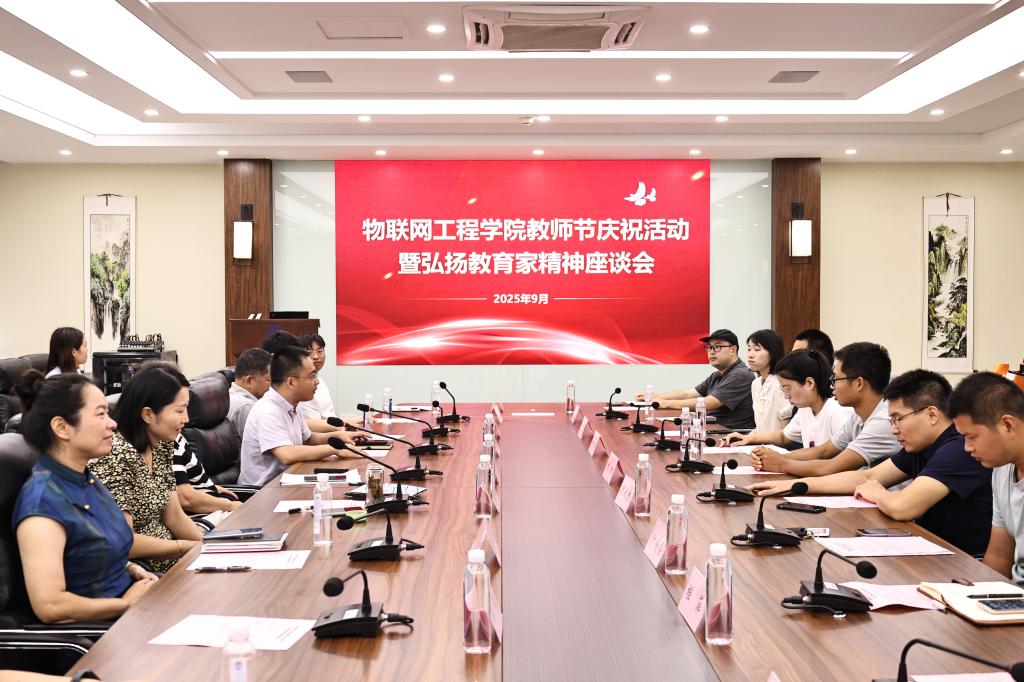 在第41个教师节来临之际,为深入学习贯彻习近平总书记关于教育的重要论述,进一步凝聚立德树人共识,9月9日上午,物联网工程学院在B222会议室举行教师节庆祝活动暨弘扬教育家精神座谈会。校关工委青年教师导师杨慧中、学院领导班子成员、系主任及青年教师代表等20余人参加会议。会议由学院副院长陶洪峰主持。