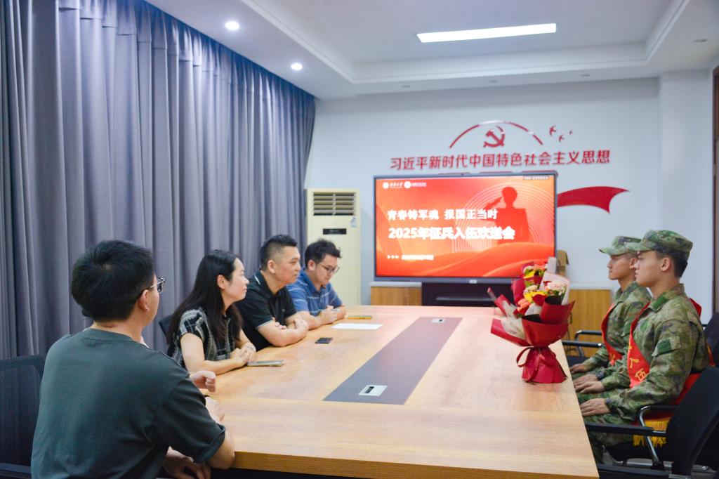 为给即将投身军营、携笔从戎的学子送上深切祝福与殷切期望,近日,物联网工程学院2025年秋季入伍新兵欢送会于学院D112举行,学院党委书记张华、党委副书记吴妍出席会议,入伍学生辅导员张圆、曾磊,国防教育专项辅导员沈滔及全体入伍新兵共同参加。