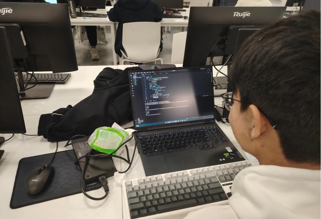 比赛现场紧张而有序,选手们或专注思索算法逻辑,或快速编写代码,充分投入解题过程中。经过激烈角逐,共评选出获奖选手7名,其中一等奖1名、二等奖2名、三等奖4名。值得关注的是,本届获奖新生比例较往年明显提高,展现出新一届学生在编程基础与算法理解能力上的稳步增强,也反映出学院持续推进编程教学与竞赛培训的成果正在逐步显现。