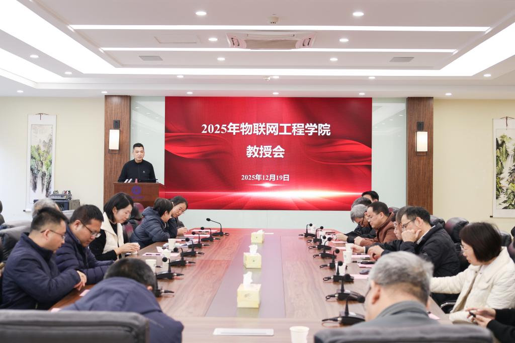 12月19日下午,物联网工程学院2025年教授会在学院B222会议室召开。学院全体教授30余人参会,会议由党委书记张华主持。