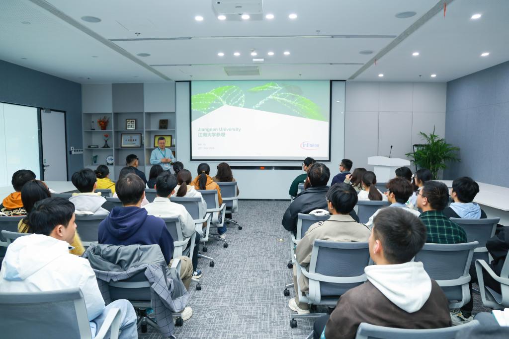(物联网学院)师生一行表示热烈欢迎。他围绕企业架构、核心业务、明星产品以及独特的黄漫展开全面介绍,彰显了英飞凌在全球功率系统和物联网领域作为半导体领导者的行业地位。随后,周敏芳以企业发展脉络为引,系统介绍了公司在功率半导体、物联网解决方案等领域的全球领先地位,拆解了从芯片研发到终端应用的完整业务链条,让同学们直观感受半导体技术对新能源、智能硬件等领域的核心支撑作用。