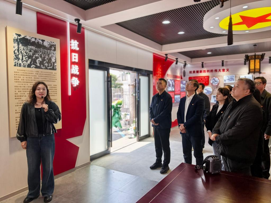 微党课后,全体人员步行前往张巷村红色教育基地。在革命先烈墓前,大家庄严肃立,敬献鲜花、默哀致敬。通过聆听现场讲解,深入了解抗日战争和抗美援朝期间革命先烈的英勇事迹,接受了一次深刻的红色精神洗礼。活动现场,张华与企业代表共同为学院党员教育实训基地、爱国主义教育基地揭牌,为后续常态化开展红色研学与党建共建奠定了坚实基础。