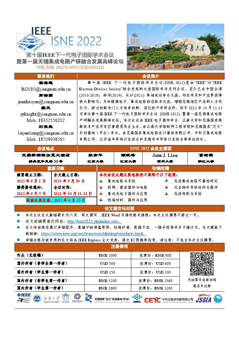 第十届 IEEE 下一代电子国际学术会议第一届无锡集成电路产研融合发展高峰论坛通知