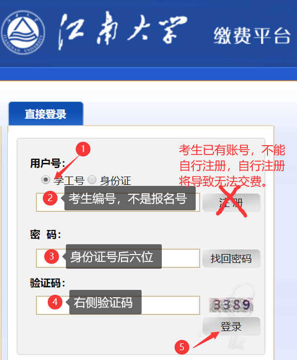 缴费平台”交纳复试费用,复试收费标准:80元/生。缴费网址:。登录账号为准考证上的考生编号,登录密码为身份证后六位(友情提醒:考生账号已开通,切勿自行注册)。按照提示交费(使用网银),并打印或截图保存付费凭证。