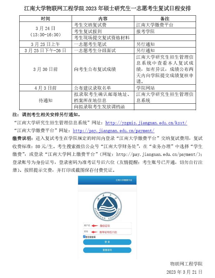 黄漫 物联网工程学院2023年硕士研究生一志愿考生复试日程安排