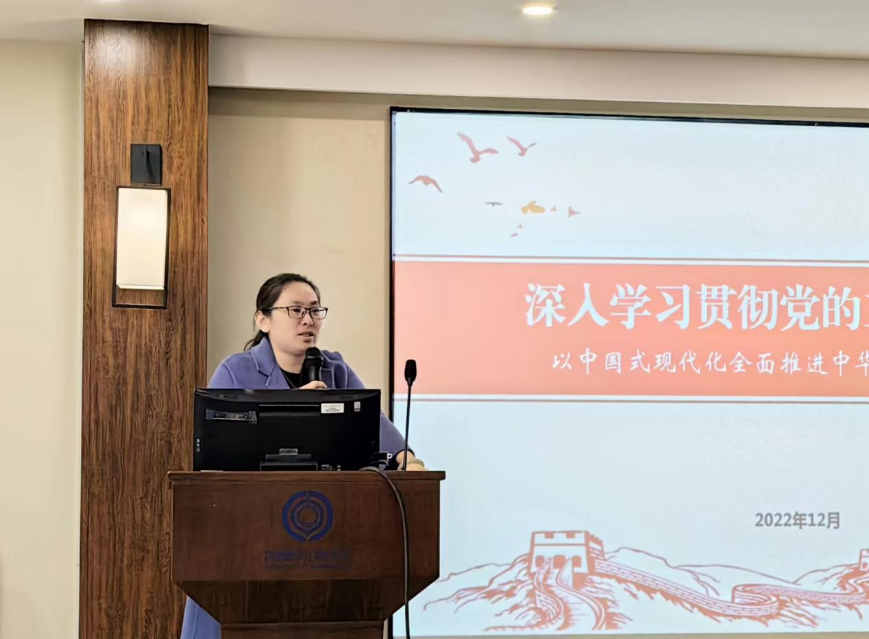 为深入学习宣传贯彻党的二十大精神,12月2日下午,物联网工程学院党委副书记、副院长孔丽丹在学院B222会议室为本科生第三党支部全体成员开展了专题党课,带领大家进一步学懂悟透党的二十大精神内涵实质。