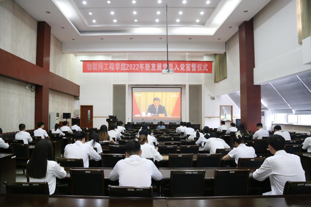 为庆祝中国共产党成立101周年,迎接党的二十大召开,7月1日上午,物联网工程学院在D328会议室举行“七一”新党员宣誓仪式暨专题党课学习。学院党委书记程捷音、副书记兼副院长孔丽丹、分团委书记洪筱、辅导员代表李灿以及44名新发展学生党员参加活动。大会由学院专职组织员孙小芳主持。