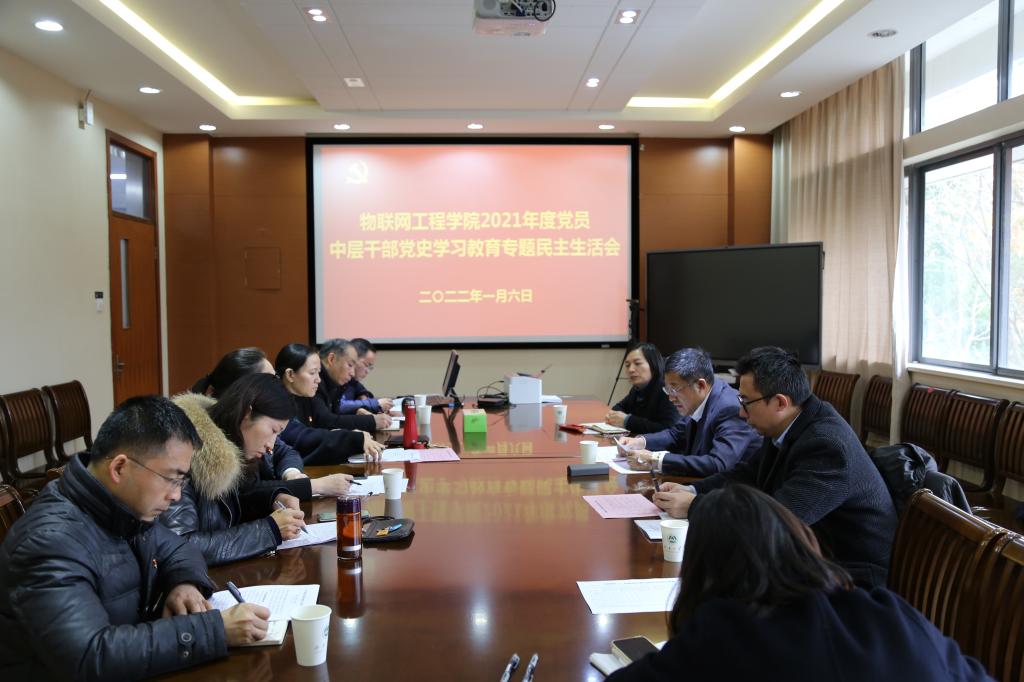 1月6日下午,物联网工程学院召开2021年度党员中层干部党史学习教育专题民主生活会。校党委督导组督导、校长陈卫,校纪委督导组督导、校工会常务副主席黄壮霞到会指导。学院全体中层干部参会,会议由学院党委书记程捷音主持。