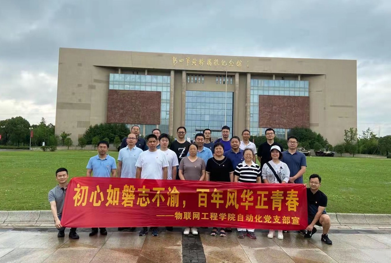 为庆祝中国共产党成立100周年,进一步扎实推进党史学习教育走深走实,7月2日和3日,物联网工程学院自动化党支部赴泰州开展“初心如磐志不渝,百年风华正青春”党史学习教育,支部党员共赴红色之旅、缅怀革命先烈、传承红色基因、弘扬爱国情怀。