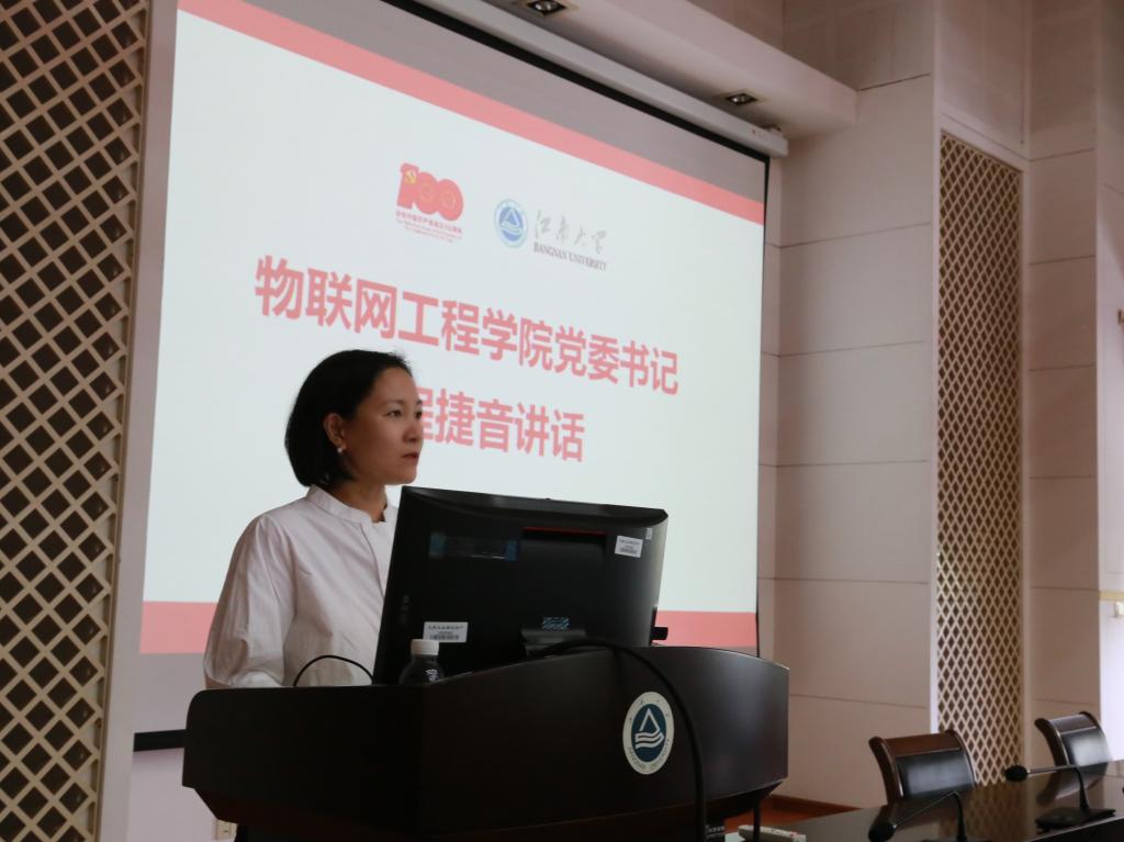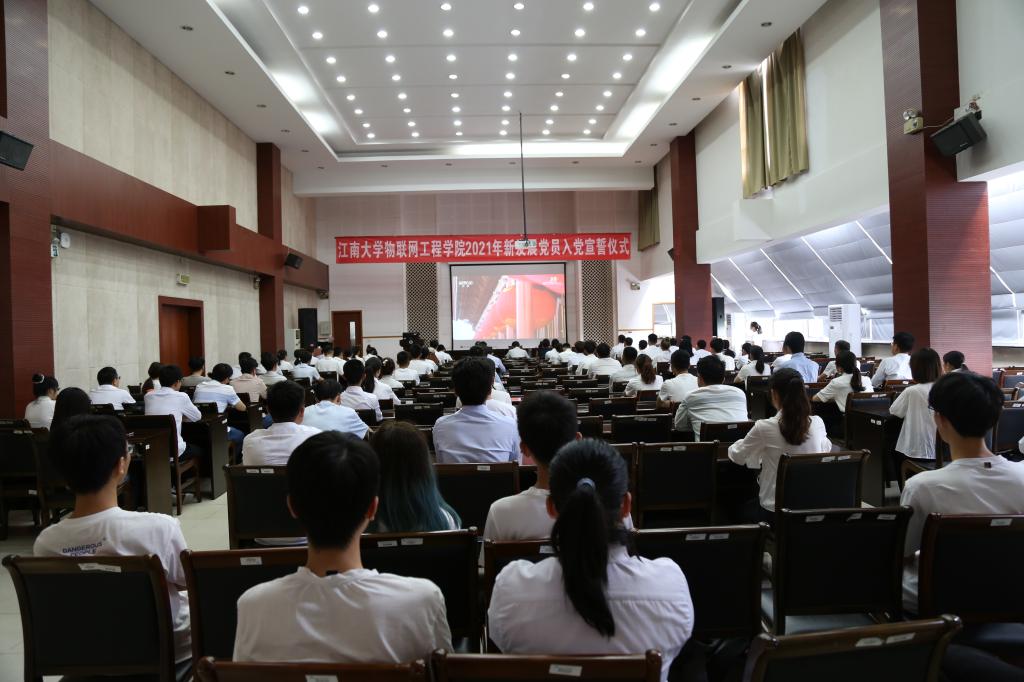 为庆祝中国共产党成立100周年,7月1日上午,物联网工程学院在D328会议室举行新党员入党宣誓、老党员代表重温入党誓词活动。学院党委书记程捷音、副书记兼副院长孔丽丹、89名新发展学生党员参加活动,院专职组织员孙小芳主持大会。