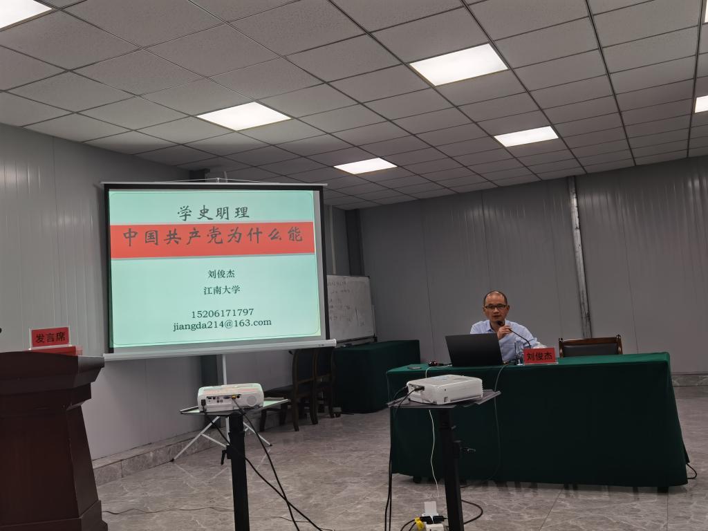 首先,刘俊杰以《学史明理——中国共产党为什么能》为题,开展党史学习教育讲座,他从坚持从严治党、密切联系群众、立足中国实际、保持昂扬精神等四个方面,深入分析了中国共产党为什么能带领中国人民走向繁荣富强,展现了中国共产党在组织建设、思想建设、反腐建设、政治建设上举措和成就,充分彰显了中国特色社会主义制度的优越性。