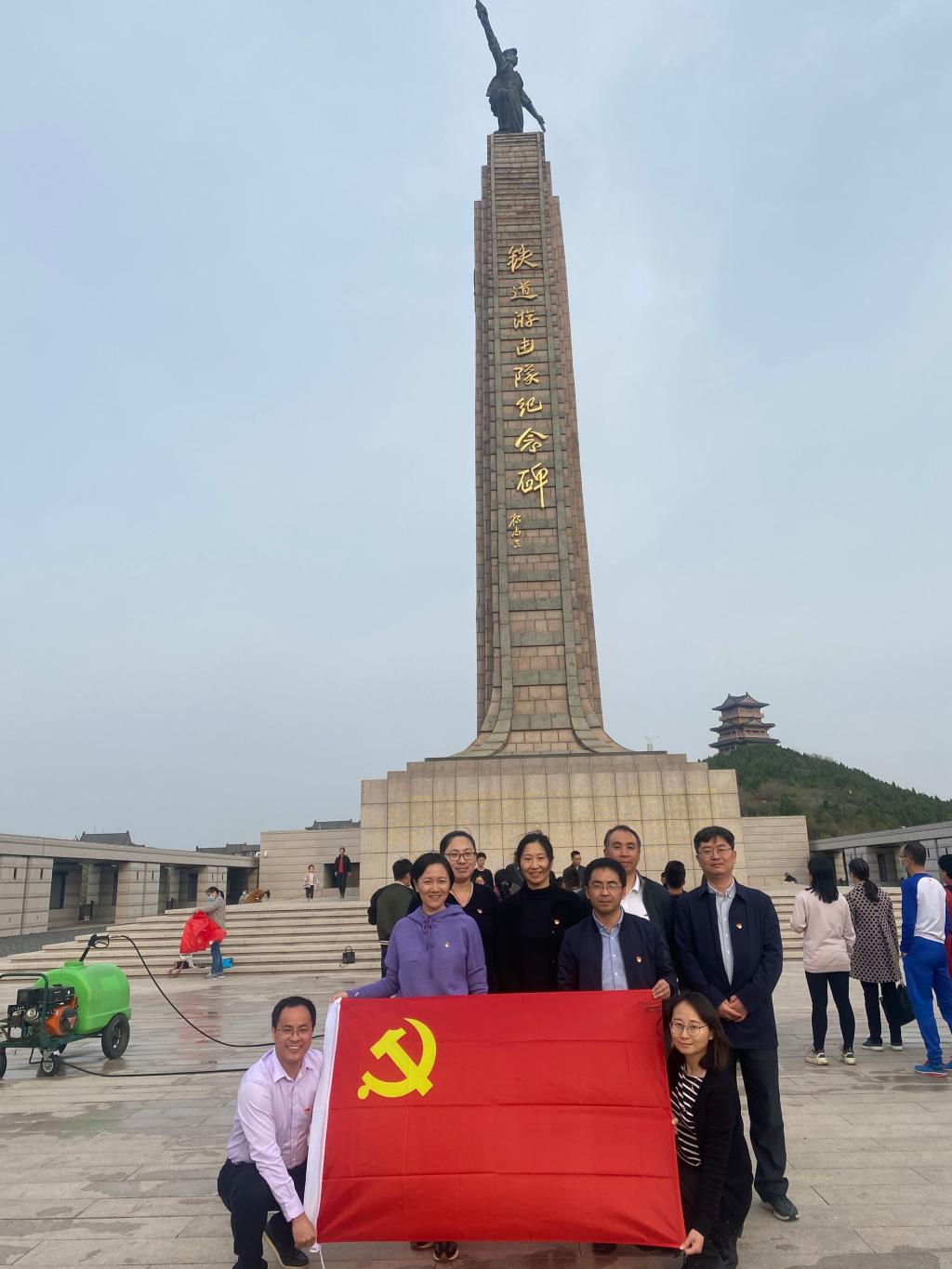 物联网工程学院党委中心组在铁道游击队纪念碑前合影