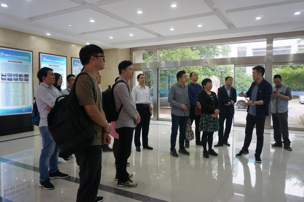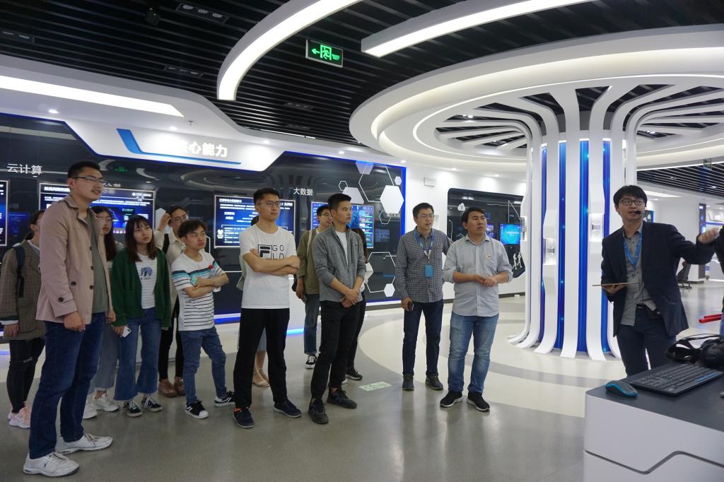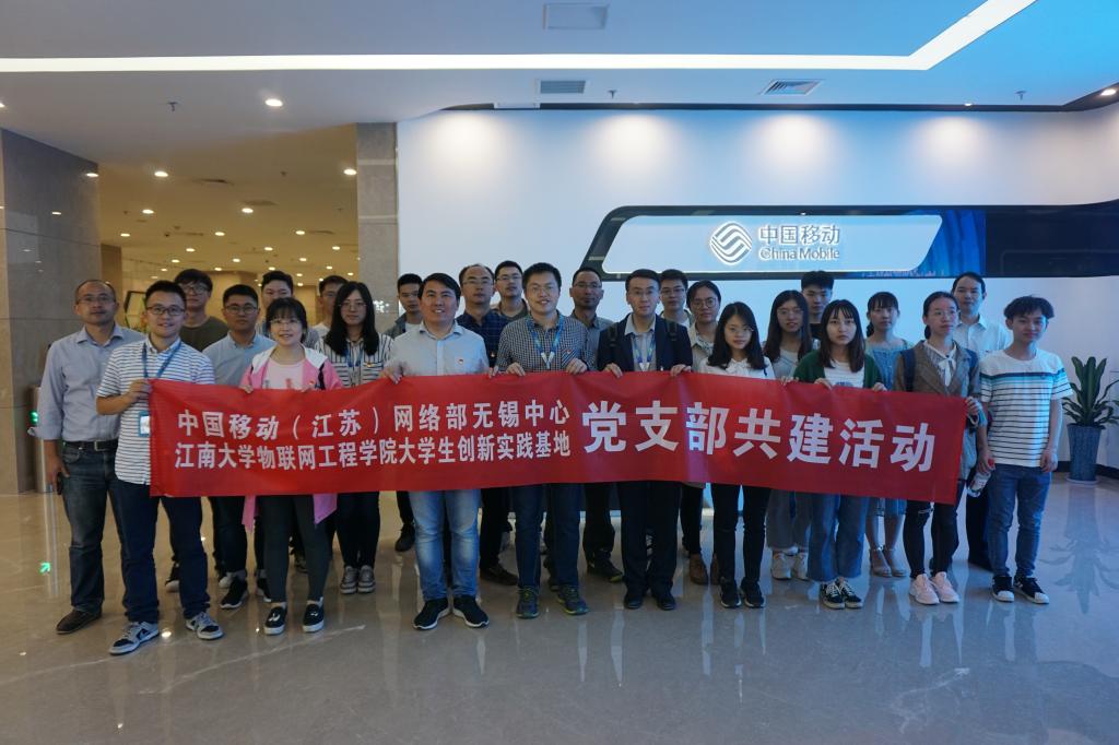 仪式结束后,吴垚带领江苏移动网络部无锡中心党支部成员参观了物联网大学生创新实践基地,实地介绍基地发展及运行情况。随后,双方支部成员一同前往中国移动无锡分公司物联网展厅进行参观。展厅负责人展示了云计算、大数据、VR、AI、智慧政务、智能制造、V2X以及远程驾驶等最新科技,使物联网大学生创新实践基地党支部师生深入了解了移动公司在智能领域的发展。参观结束后,双方在移动公司会议室进行了简短的座谈会议交流,并合影留念。