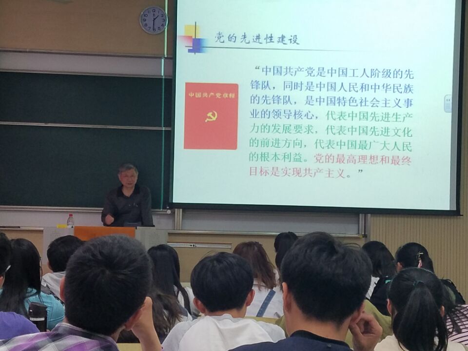 接着,娄老师详细讲解了关于党的先进性建设的内涵,他说我们的党作为一个在有着13亿多人口的大国长期执政的党,党的建设十分重要、牵动全局。希望同学们能够深刻领会建设中国特色社会主义的总依据、总布局、总任务,做推进两个百年目标、中国梦的推进者和实践者。