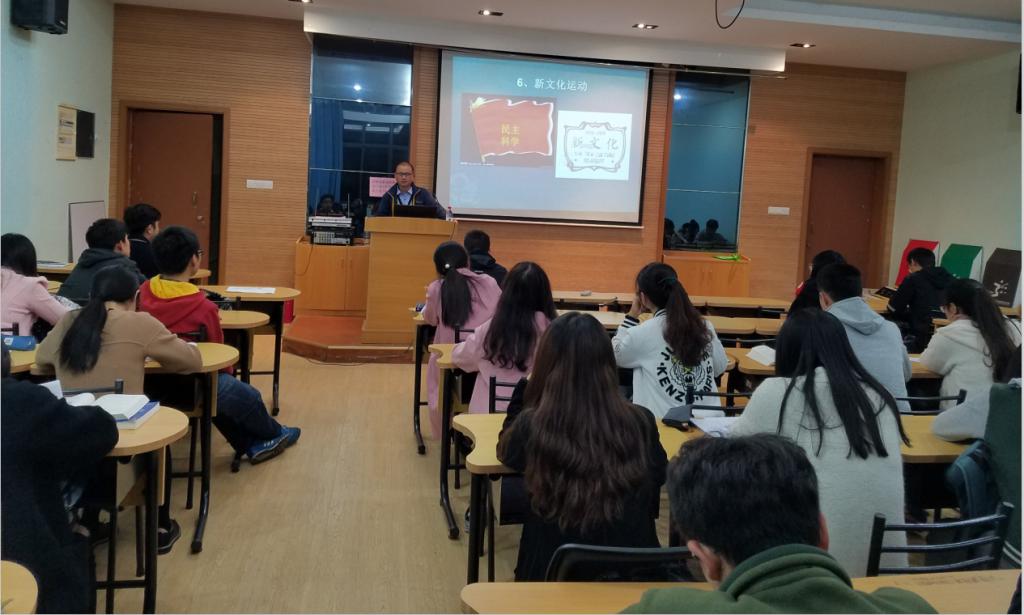 讲座伊始,刘老师以时间为轴,通过详细介绍太平天国、洋务运动、辛亥革命、新文化运动、五四运动与十月革命,向同学们展示了民族意识觉醒的历程,强调了中国共产党在动荡年代生存下来的不易与艰辛。接着,刘老师以两度国共合作,农村包围城市,武装夺取政权为例,给大家讲述了革命在探索中曲折前进的艰辛历程,指出历史与中国人民选择中国共产党的领导是伟大而正确的选择。最后,刘老师着眼于中国共产党的现状,展望了党的建设的美好前景。