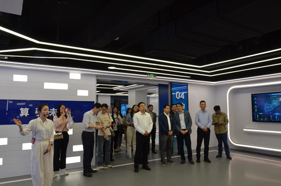 首先,在基地工作人员的带领下,大家参观了无锡人工智能协同创新基地。基地作为集算力赋能、科研创新、成果转化、教育培育、企业孵化及文化培育功能于一体的综合平台,依托“一基地、两中心、四平台”的创新架构,深度实现了政策引导、学术研究、产业实践、教育培训与应用推广的无界融合,显著加速了从科研成果到实际应用的转化进程,并以国际化校企合作模式聚集全球智慧,培养高端人才,推动核心技术突破,为人工智能领域注入创新动力,展现出新生产力建设对产业升级和社会发展的关键作用。