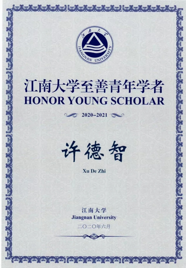 他的研究成果获中国商业联合会科技进步一等奖和中国轻工联合会科技进步二等奖各一项。获江苏省双创人才(科技副总)计划支持和江苏省优秀博士论文等荣誉。