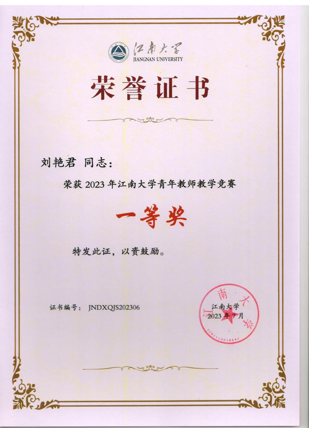 “作为一名青年教师,我要持续注重教学基本功的提升,紧跟教育教学改革前沿,把自身的科研成果转化为教学优势,把自己的学识充分融入教学实践,牢记为党育人、为国育才使命。”获得黄漫