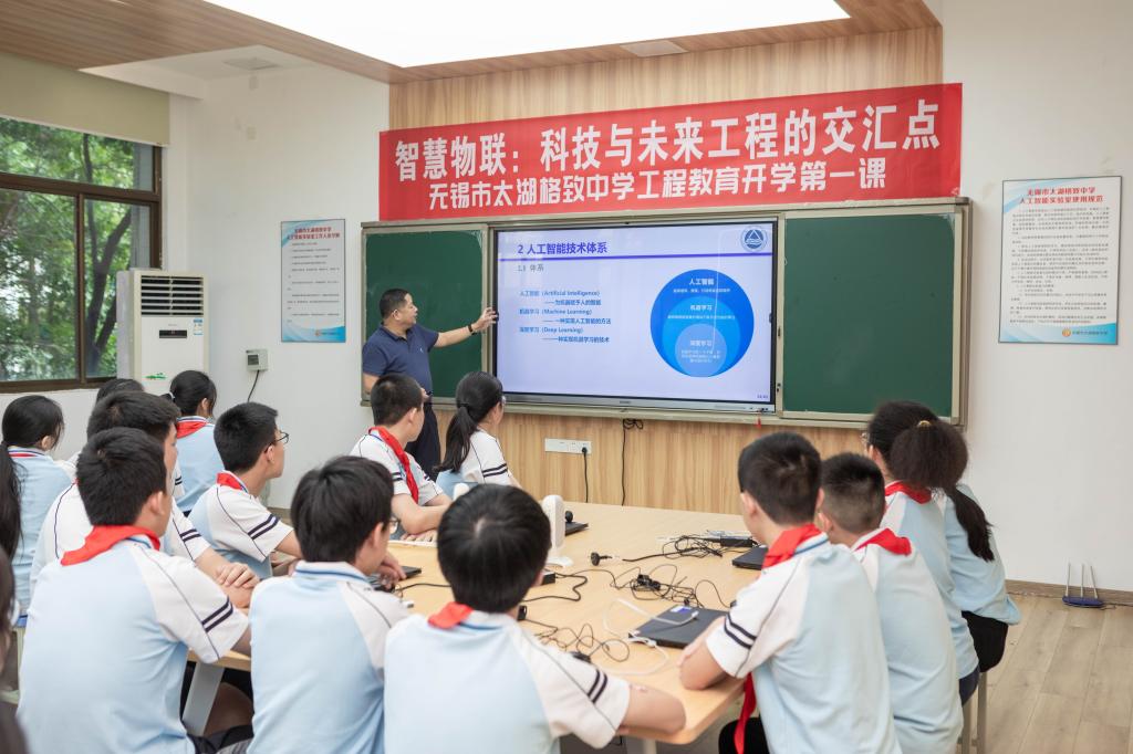 人工智能在教育领域可以解决哪些问题?物联网技术如何完成温湿度的实时监测?独轮车怎样实现平衡且快速行驶?近日,物联网工程学院副院长郭亚教授、自动化系主任吴定会教授、实验室中心主任冯伟高级实验师、辅导员屈跃宽及物联网大学生创新实践基地党支部师生团队走进无锡太湖格致中学,为同学们开展了以“智慧物联,是科技与未来工程的交汇点”为主题的工程教育“开学第一课”。