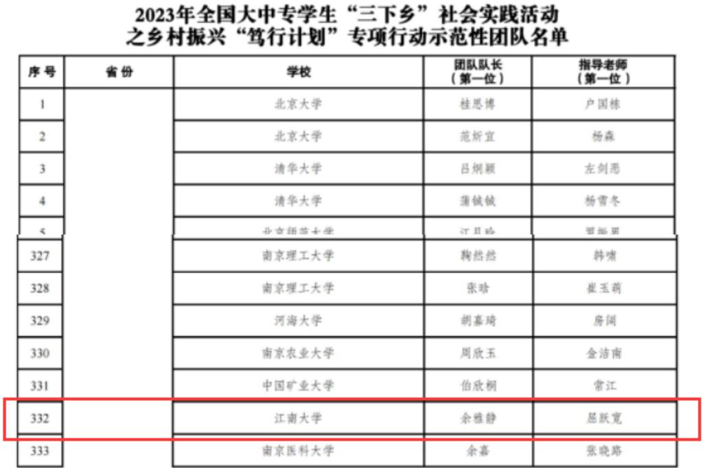 乡村振兴“笃行计划”专项行动全国示范性团队名单