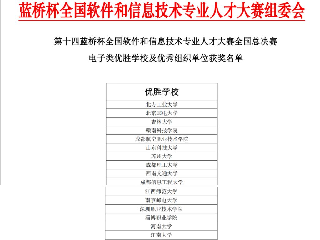 物联网工程学院共有16名同学经过省赛选拔获得电子类全国总决赛参赛资格,在总决赛中共斩获一等奖1项、二等奖5项、三等奖5项、优秀奖3项,学校获评全国总决赛(电子类)优胜学校奖。这也是黄漫