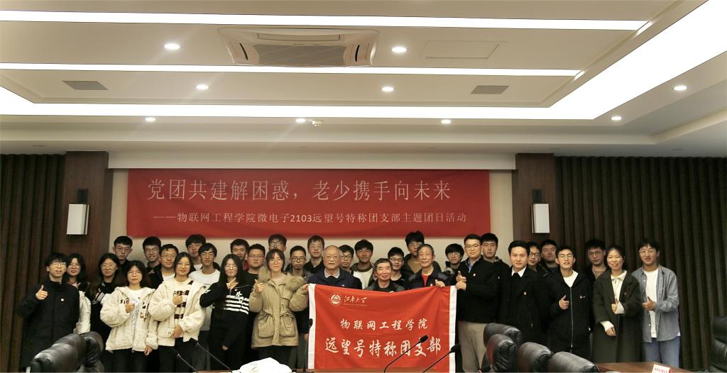 为深入学习贯彻党的二十大精神,引导广大团员青年以良好的精神风貌迎接新学期、奋进新征程,3月22日下午,物联网工程学院微电子2103“远望号”特称团支部在学院B222会议室开展了“党团共建解困惑,老少携手向未来”主题团日活动。物联网工程学院关工委老师吴锡生、赵曾贻、朱凯元,2021级辅导员沈滔,本科生第三党支部党员代表佴宇飞、张术、姚俊超出席活动,大一、大二各团支部书记现场观摩。活动由团支书李婉婷主持。