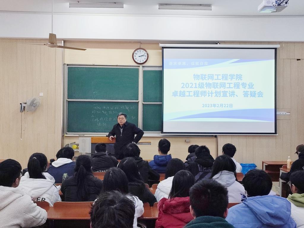 2月22日下午14点,物联网工程学院2021级物联网工程专业“卓越工程师教育培养计划”宣讲会在1A114举办,信息技术系吉训生教授、秦宁宁教授出席会议并主讲。宣讲会由辅导员沈滔主持。