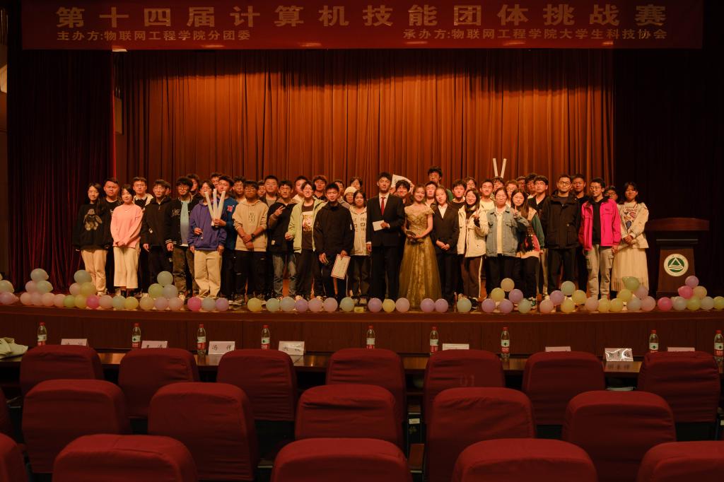第十四届计算机技能团体挑战赛决赛在南区大学生活动中心顺利举行。物联网工程学院分团委书记洪筱,实验中心副主任、高级实验师冯伟,辅导员王志顺、王涛、沈滔、谢幸福、曾磊,院科技协会指导老师屈跃宽,院学生会主席团成员石潇藤、孟非、韩静及全校300余名同学参与了本次活动。