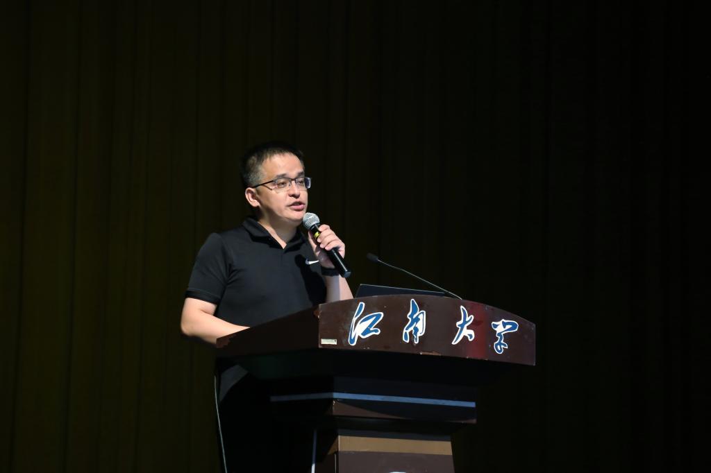 9月18日下午,物联网工程学院“宝哥说”新生入学教育专场讲座在文浩馆观众厅举行。马克思主义学院唐忠宝教授受邀作《我为什么反对虚无主义——从佛系、丧、空心病说起》的专题报告,学院2022级全体新生参加了本次活动。讲座由学院党委副书记、副院长孔丽丹主持。
